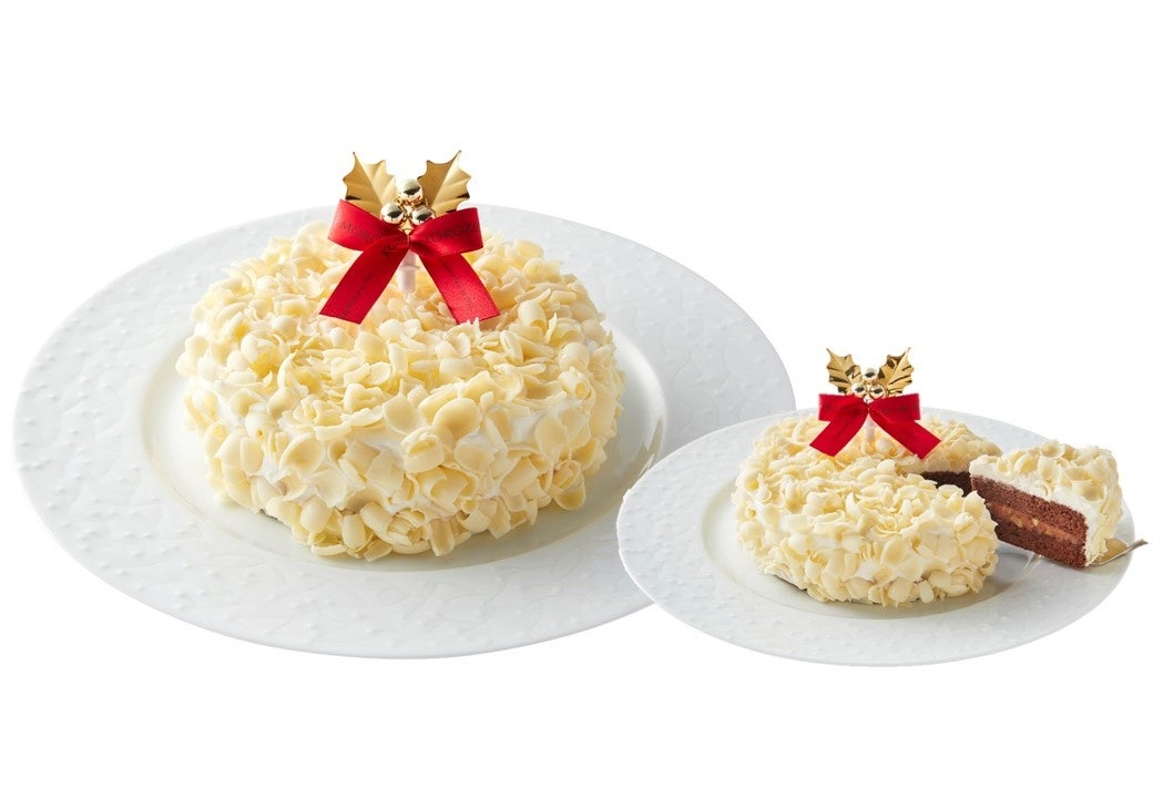 ホワイトチョコレートで包み込んだやわらかいフォルムのチョコレートケーキです。ウォールナッツ入りのチョコレートクリームをふわふわのチョコレートスポンジケーキでサンドしました。