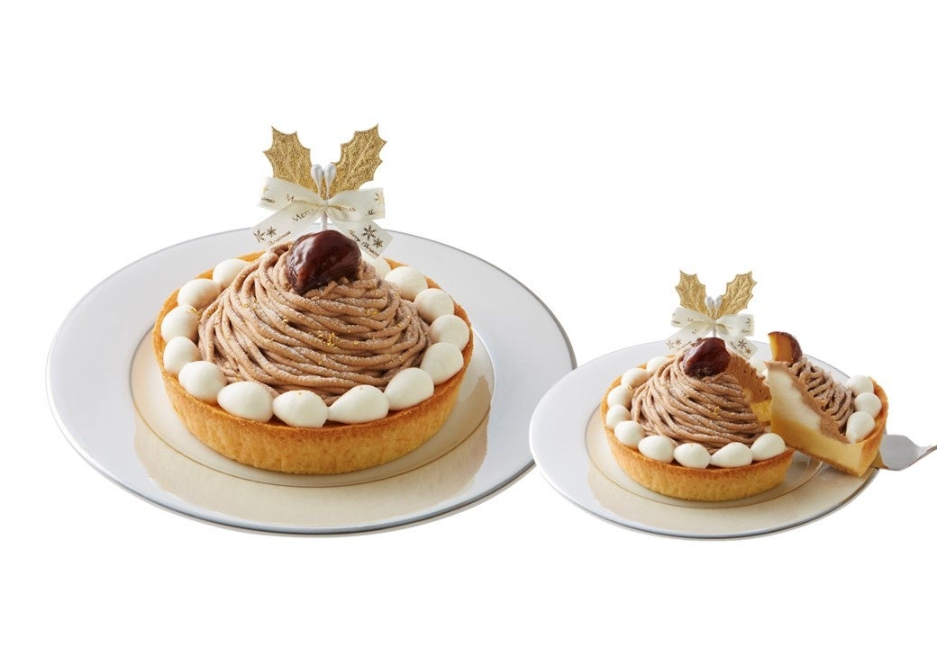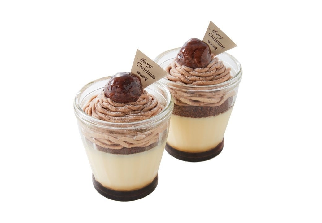 人気のカスタードプリンの上にチョコレートスポンジケーキ、たっぷりのマロンクリームを重ね、渋皮付きの栗をトッピングしました。雪が降り積もったモンブランを表現した贅沢な味わいをお楽しみください。