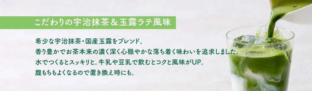 WHEYとSOYのWプロテインを配合し、1食で約21gのタンパク質補給と満腹感を同時に叶えます。独自開発原料「フローラコントローラISR®」※1や「シールド乳酸菌®」※2を配合し、身体の内側から美活力※3をサポート。さらにブラックジンジャー由来成分12mgや、女性に不足しがちなビタミン・ミネラルを豊富に含み、ダイエットを支えます。甘さを抑えた宇治抹茶&玉露ラテ風味を追求し、6つのフリー処方で毎日の美しさを守ります。