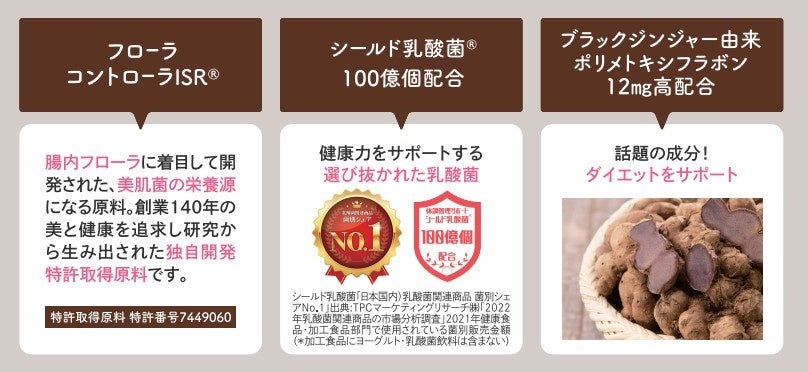 ※1特許取得原料(特許番号7449060号) ※2シールド乳酸菌は株式会社森永乳業の商品です