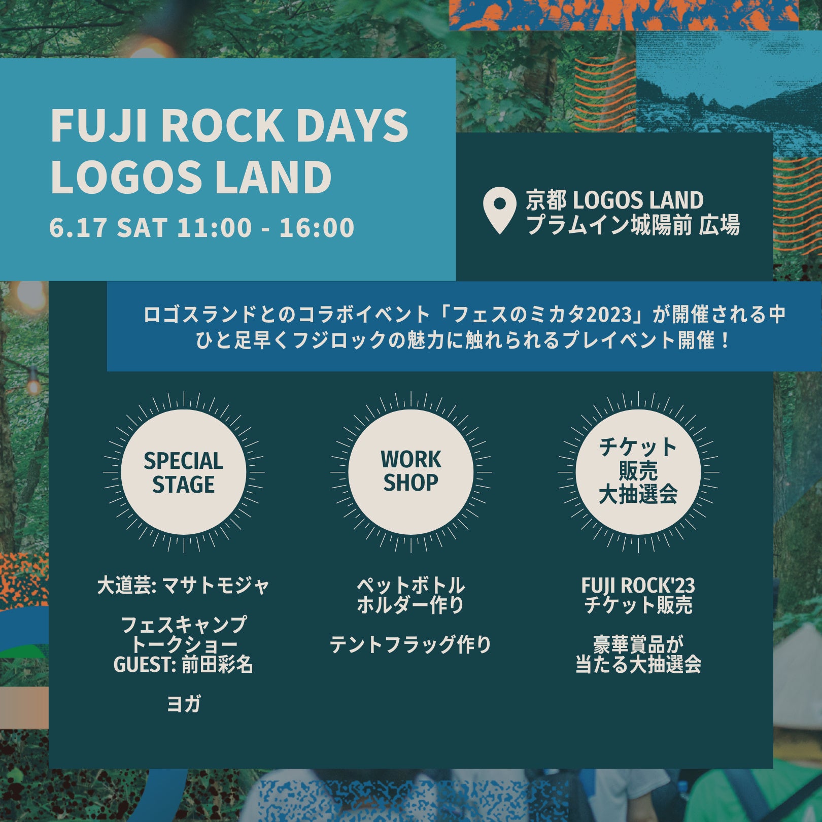 京都ロゴスランドでフジロックが体験できるスペシャルイベント!「FUJI ROCK DAYS at LOGOS LAND」6/17(土)開催!