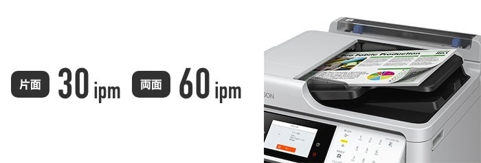 (注2)ipm(image per minute)は、1分当たりに印刷可能な面の数。PPM最速値はモノクロ約34枚/分。測定データおよび測定条件は、エプソンのホームページをご覧ください。