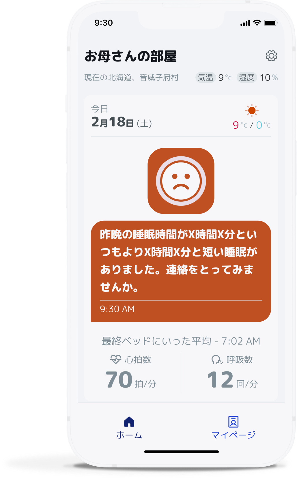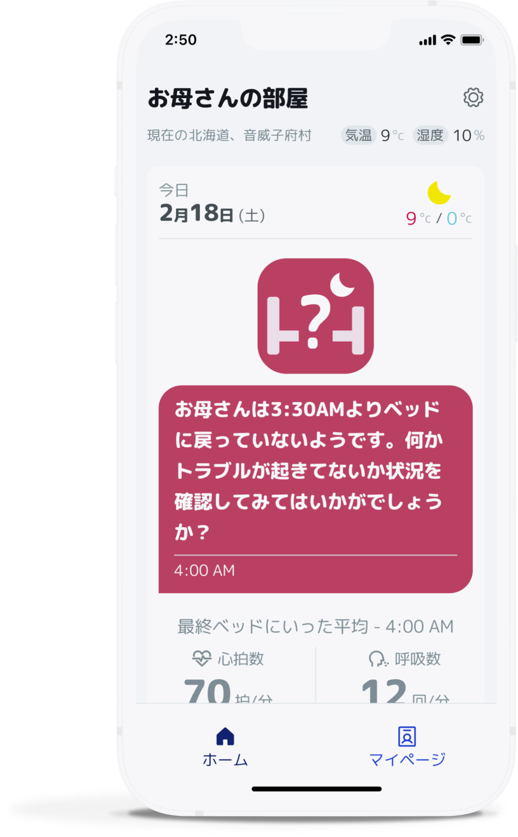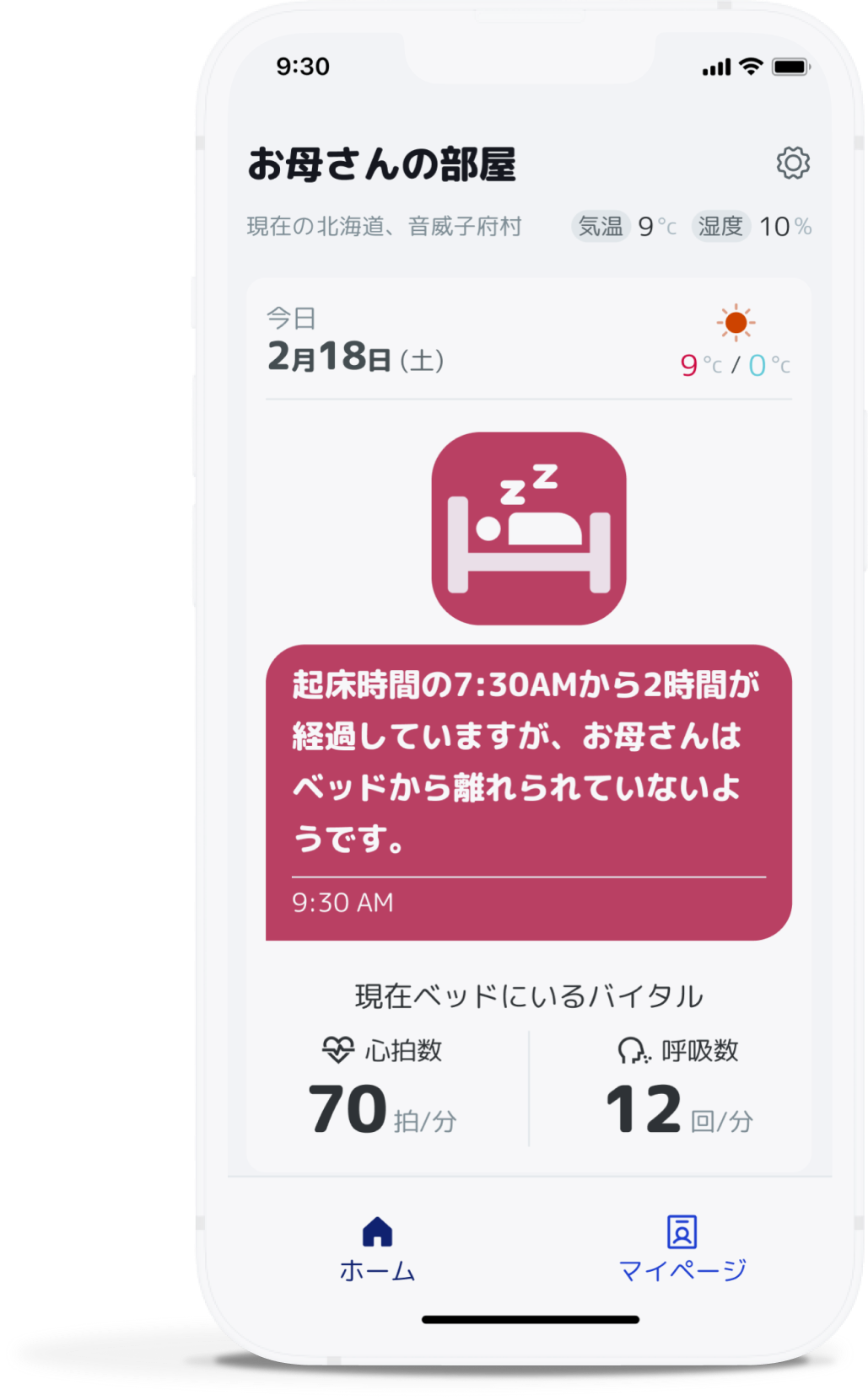 ■寝室の壁に設置するだけ。カメラで監視せずに、大切な人の生活を見守れる安心感