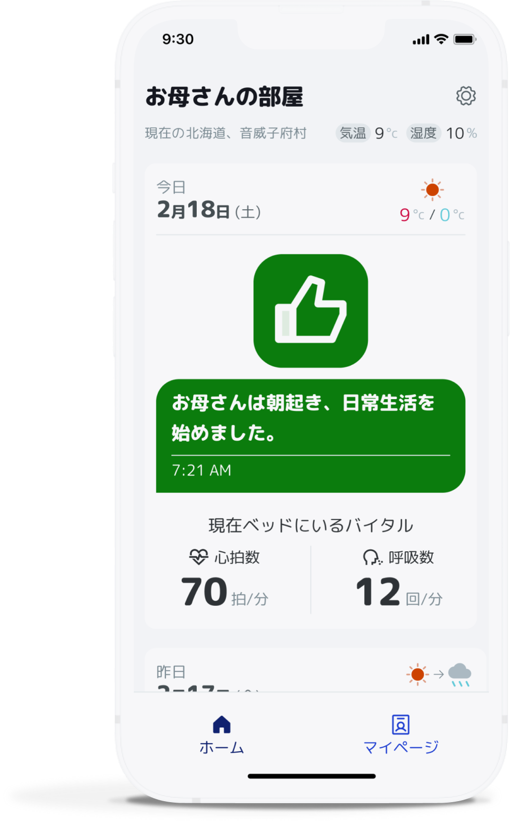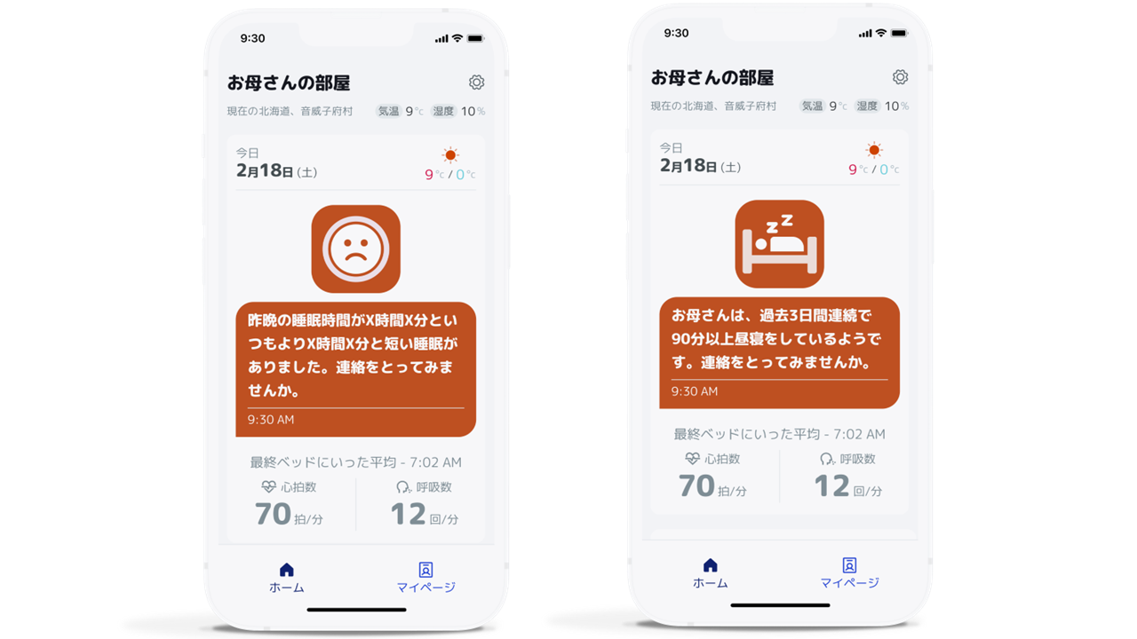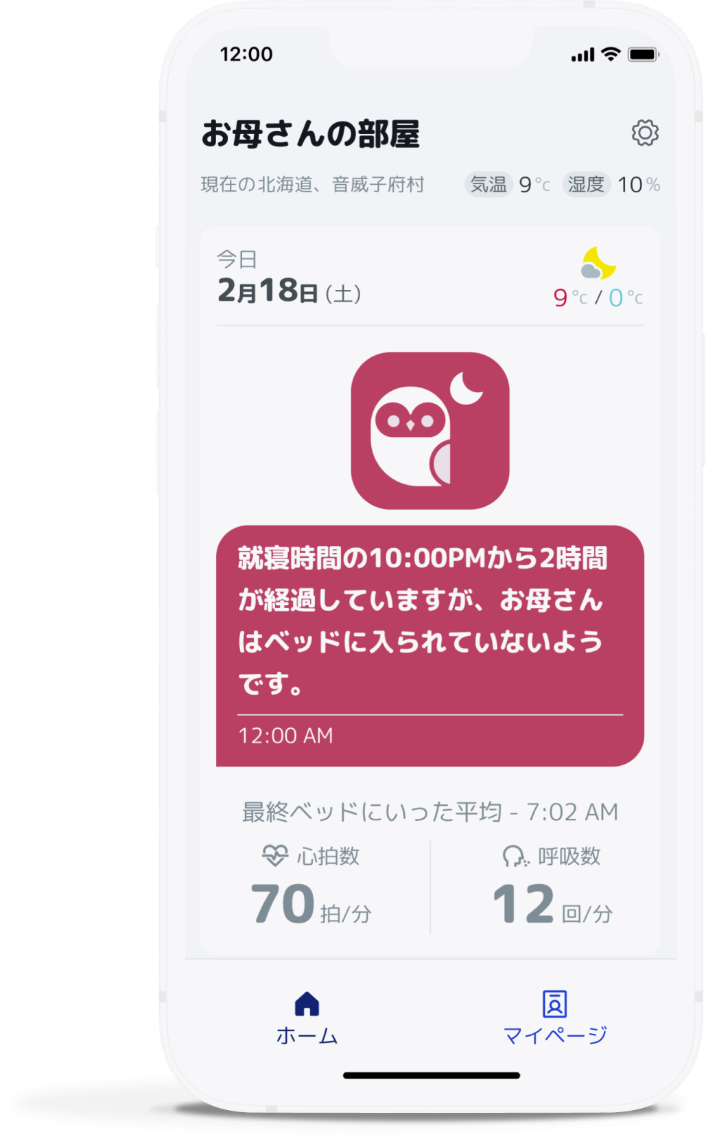 ■寝室の壁に設置するだけ。カメラで監視せずに、大切な人の生活を見守れる安心感
