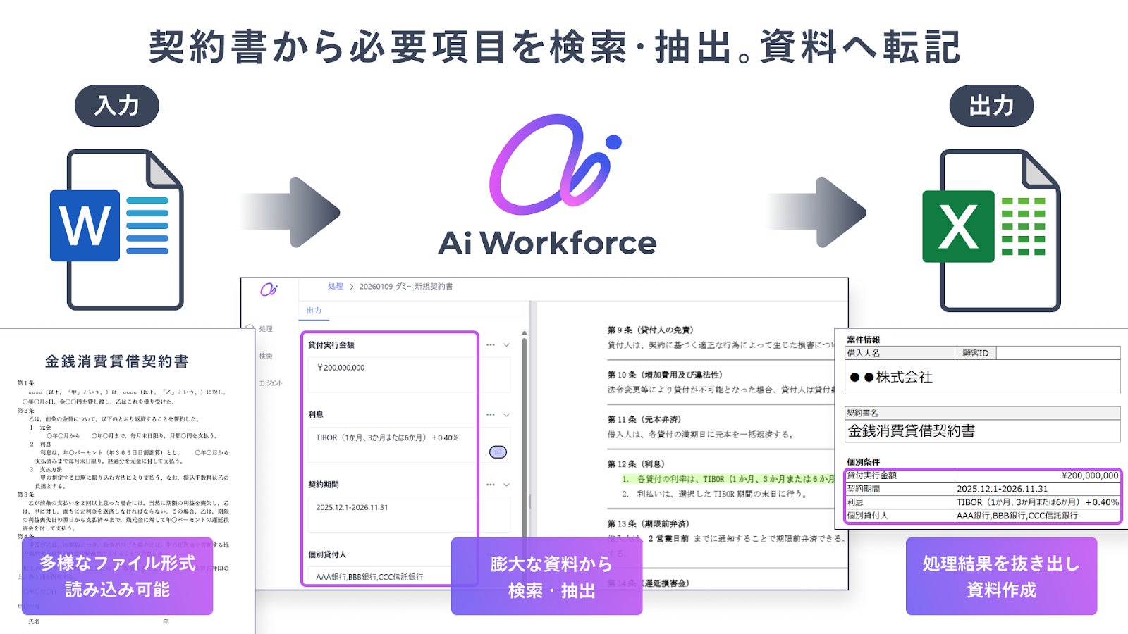 融資契約書や各種合意書から、期中管理業務に必要な情報を自動抽出