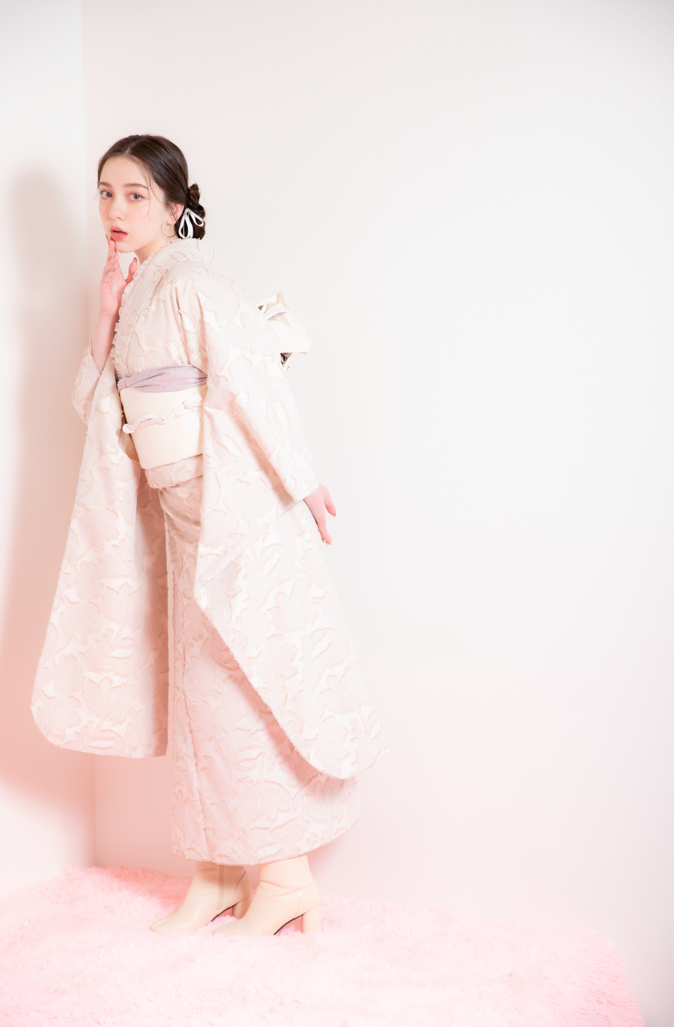 ジャガード生地の振袖で、他とはかぶらない唯一無二の自分を演出。
