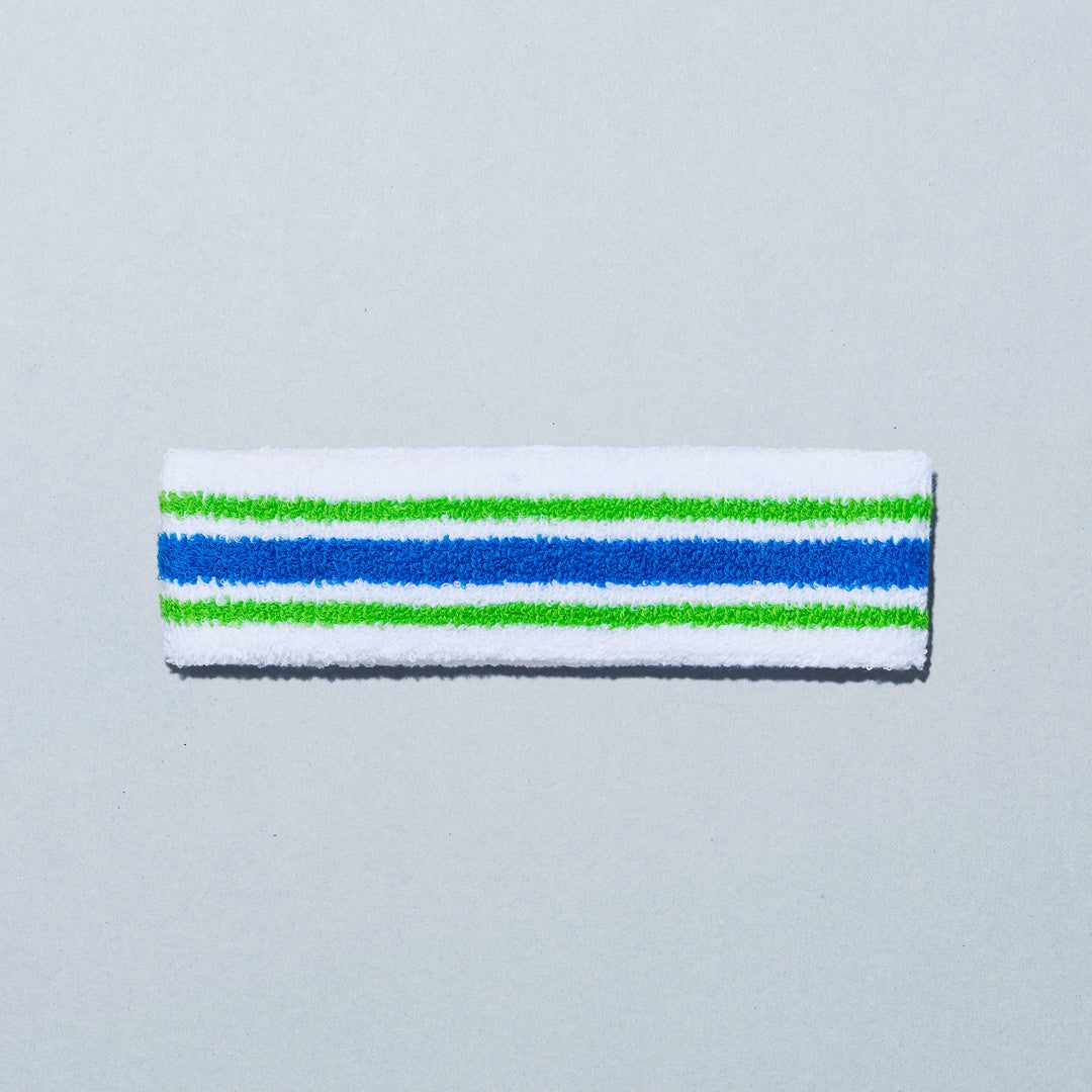 また、4月に発売した「エコリュック」に続き、生活雑貨の新商品として「ヘッドバンド」を発売いたします。人気のラインソックスの柄と連動した、青と緑と白でファミリーマートらしさのあふれるデザインです。ラインソックスと合わせたコーディネートが楽しめます。