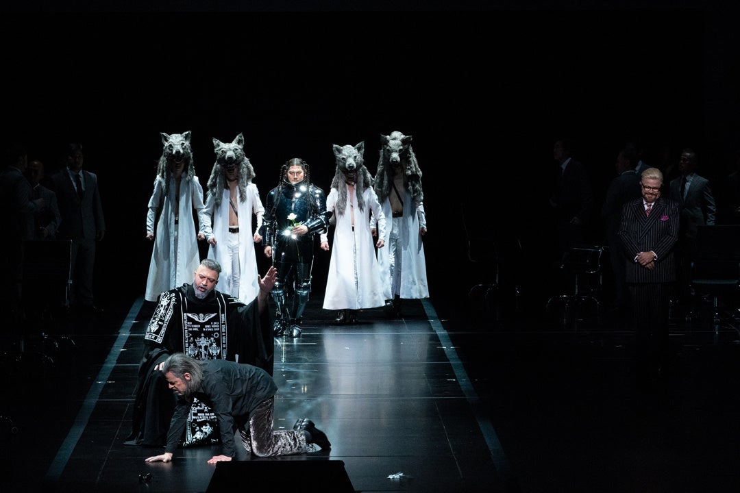 『ボリス・ゴドゥノフ』は、1600年前後の動乱時代に実在したロシア皇帝ボリス・ゴドゥノフを題材にムソルグスキーが完成させた唯一のオペラです。ポーランド国立歌劇場との共同制作により、同劇場芸術監督のマリウシュ・トレリンスキの演出、大野和士オペラ芸術監督の指揮で新制作上演された本プロダクションは、物語の中心に皇帝ボリスと息子フョードルの関係を据え、最高権力者であるボリスの罪の意識と葛藤、民衆の生々しい姿を描き出すことにより、作品が内在する権力闘争の残酷さを浮き彫りにし、大きな話題を呼びました。