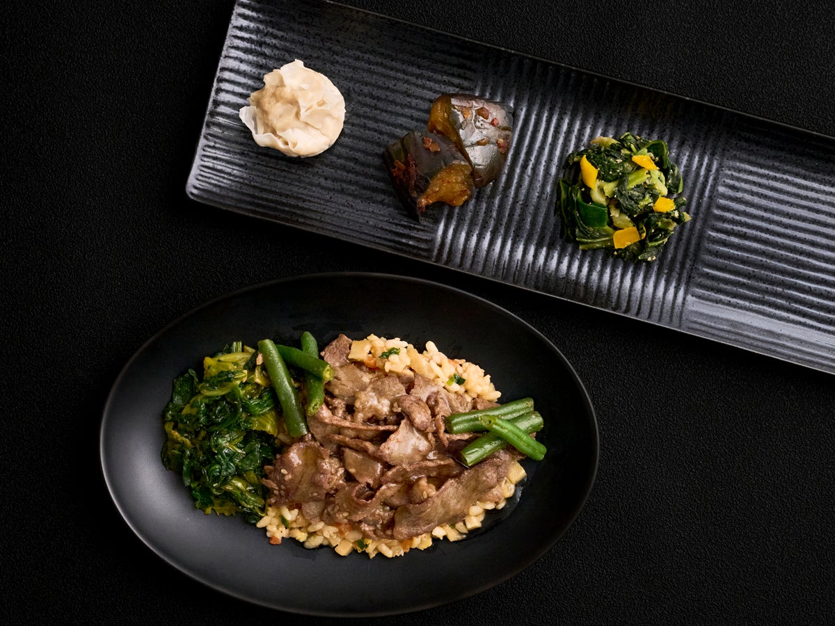 副菜は、旨み溢れる黒豚焼売、やみつきになる味わいの茄子の旨辛、香り高い青梗菜のごまだれです。素材の味を生かしつつ、贅沢な満足感を味わうことができる逸品をぜひご賞味ください。