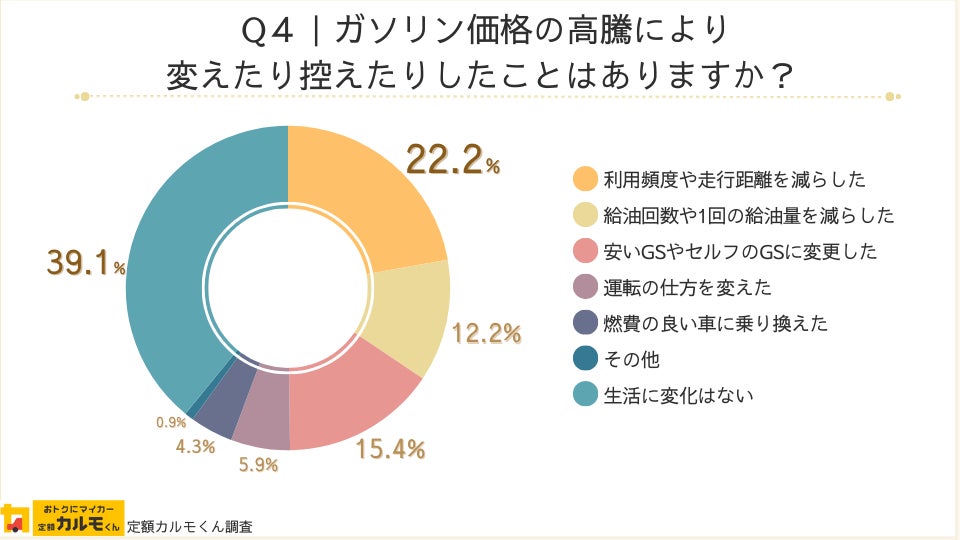 Q4:ガソリン価格の高騰により変えたり控えたりしたことはありますか?生活の変化に最も影響したものを1つ選んでください。