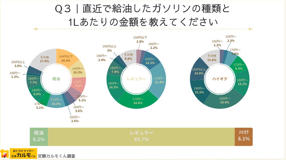 Q3:直近で給油したガソリンの種類と1Lあたりの金額を教えてください