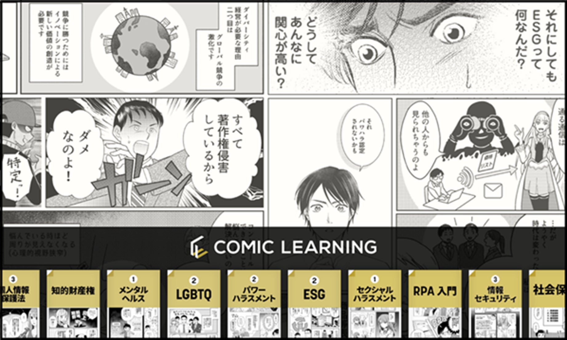 「心を動かす学びを、すべての人に届けたい」という想いから、2021年8月にサービス提供を開始した『コミックラーニング』は、おかげさまでこれまでに110万人※を超える方々にご利用いただいています。『コミックラーニング』は、分かりやすさ・共感性を強みとするコミック教材を活用し、誰もが学びたくなる「心を動かす研修」を提供するサービスです。