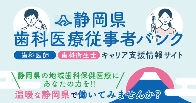 ・静岡県歯科医療従事者バンクとは、静岡県が一般社団法人静岡県歯科医師会に運営委託する歯科医療従事者(歯科医師、歯科衛生士)専門キャリア支援情報サイトです。