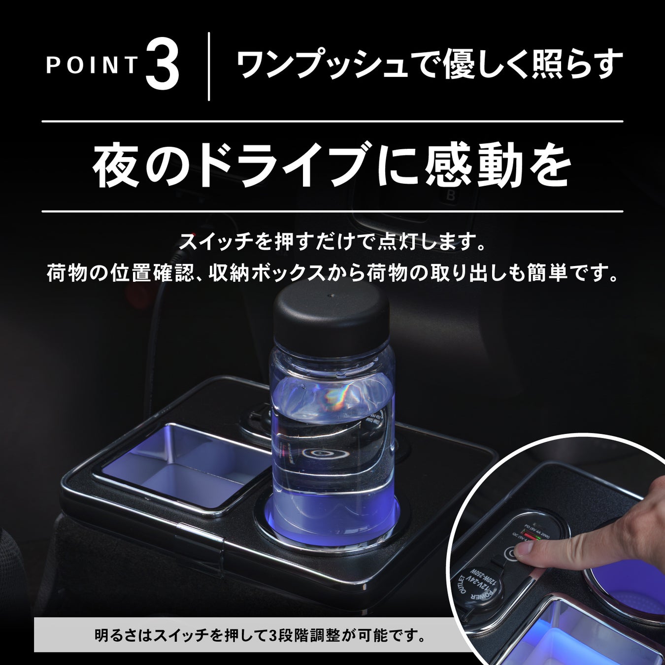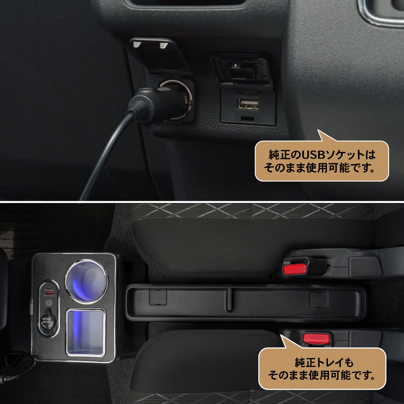 アトレー ハイゼットカーゴ 700系 専用 LEDコンソールボックス。タイプA、タイプCシガーソケットを完備。夜も安心のLED。大容量の引き出し収納ボックスは散らかりを一瞬で解決!