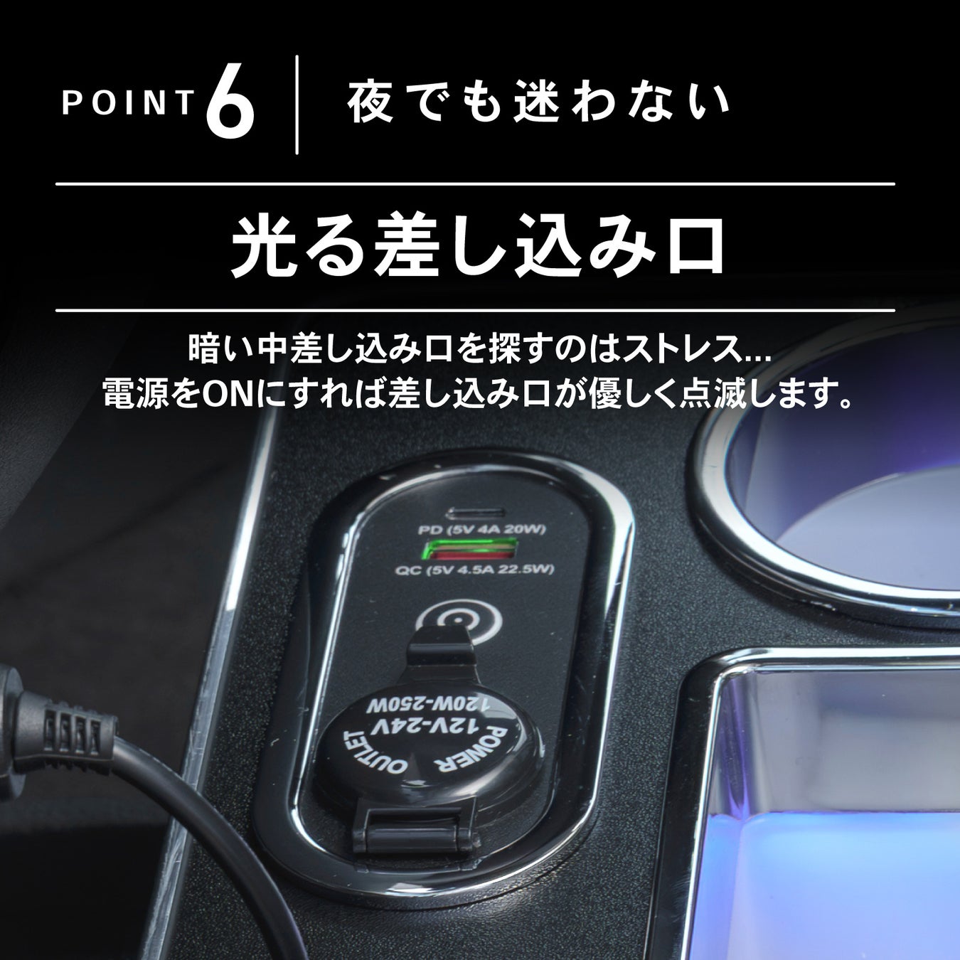 上の面にはタイプA、タイプC差し込み口を各1つずつ配備。