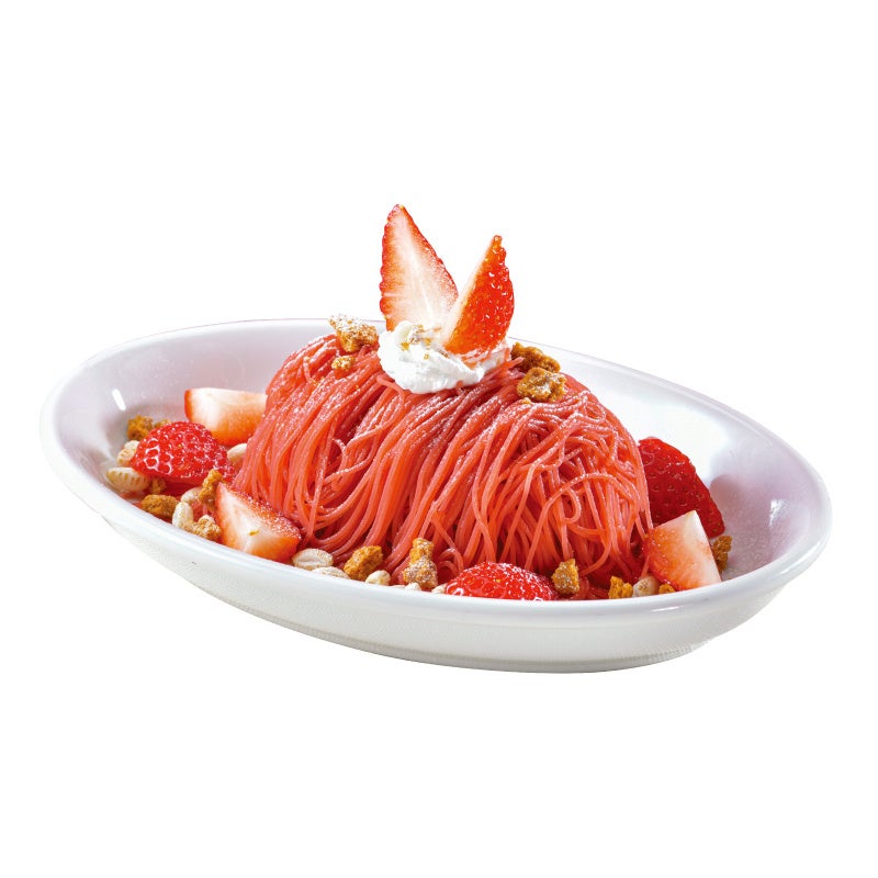 ビッグボーイの看板メニュー「大俵ハンバーグ」をモチーフにした「苺の大俵モンブラン640円(税込704円)」は、苺ペーストやフレッシュな苺、苺アイスなどを使用した、苺の甘酸っぱい味わいを存分にご堪能いただけるデザートです。