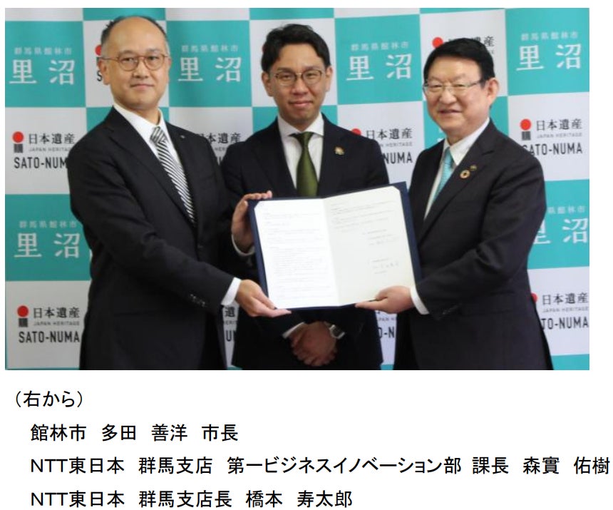 東日本電信電話株式会社 群馬支店(支店長:橋本 寿太郎、以下「NTT東日本 群馬支店」)は、内閣府の「地方創生人材支援制度(デジタル専門人材の派遣)」に基づき、館林市(市長:多田 善洋)へ「DX推進アドバイザー」を派遣し、庁内外のDX(デジタル・トランスフォーメーション)推進による住民サービス向上にともに取り組むことを目的とした「デジタル人材派遣制度による派遣に関する協定」を締結しました。
