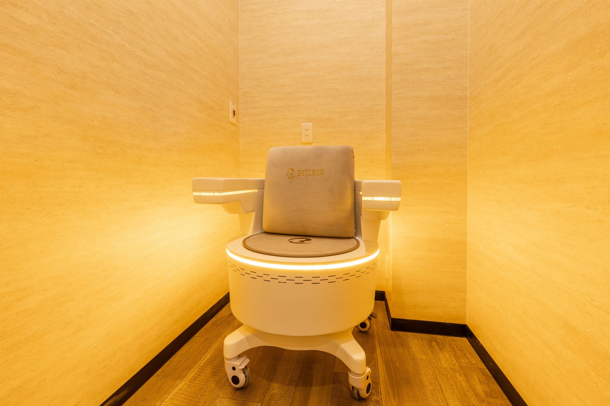服を着たまま座るだけで「筋肉+脂肪」両方にアプローチできます。なかなか鍛えることのできない骨盤底筋や下半身を電磁パルスの刺激で座るだけで鍛えることができる美容マシンです。