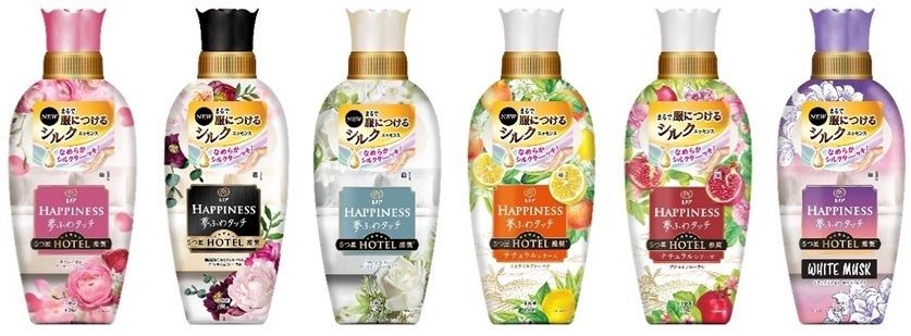 「レノアハピネス夢ふわタッチ華やかに香るアンティークローズ」「レノアハピネス夢ふわタッチ魅惑的に香るヴェルベットブロッサム&フローラル」「レノアハピネス夢ふわタッチ上品で心地よいホワイトティーの香り」「レノアハピネス夢ふわタッチシトラス&ヴァーベナ」 「レノアハピネス夢ふわタッチザクロ&フローラル」「レノアハピネス夢ふわタッチリラックスナイトホワイトムスク」