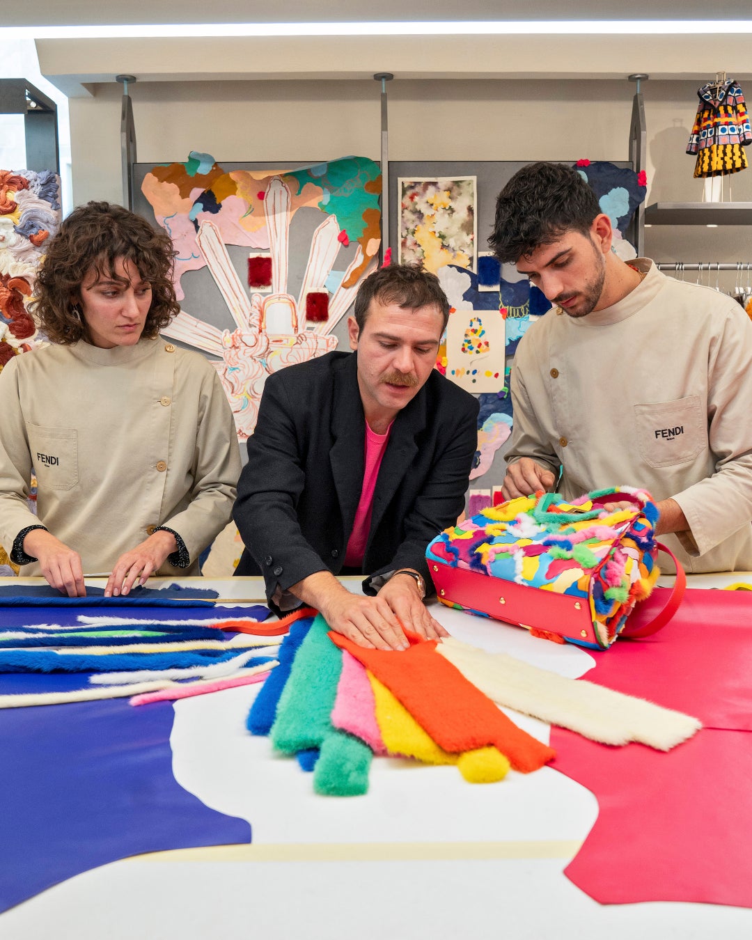 ブティック3階のアトリエでは、アーティストのエドアルド・ピエルマッテイ(Edoardo Piermattei)とフェンディのレザーおよびファー職人による特別な体験を通じて、「ロック ザ クラフト2.0(Rock the Craft 2.0)」が披露されました。このエディションでは、ピエルマッテイによる「アーティスト ピーカブー(Artist Peekaboo)」バッグとアートワークの新作が発表され、再解釈されたレザーとファーを用いた「ピーカブー」バッグやファータブレットがメイド・トゥ・オーダーのピースとして提供されました。