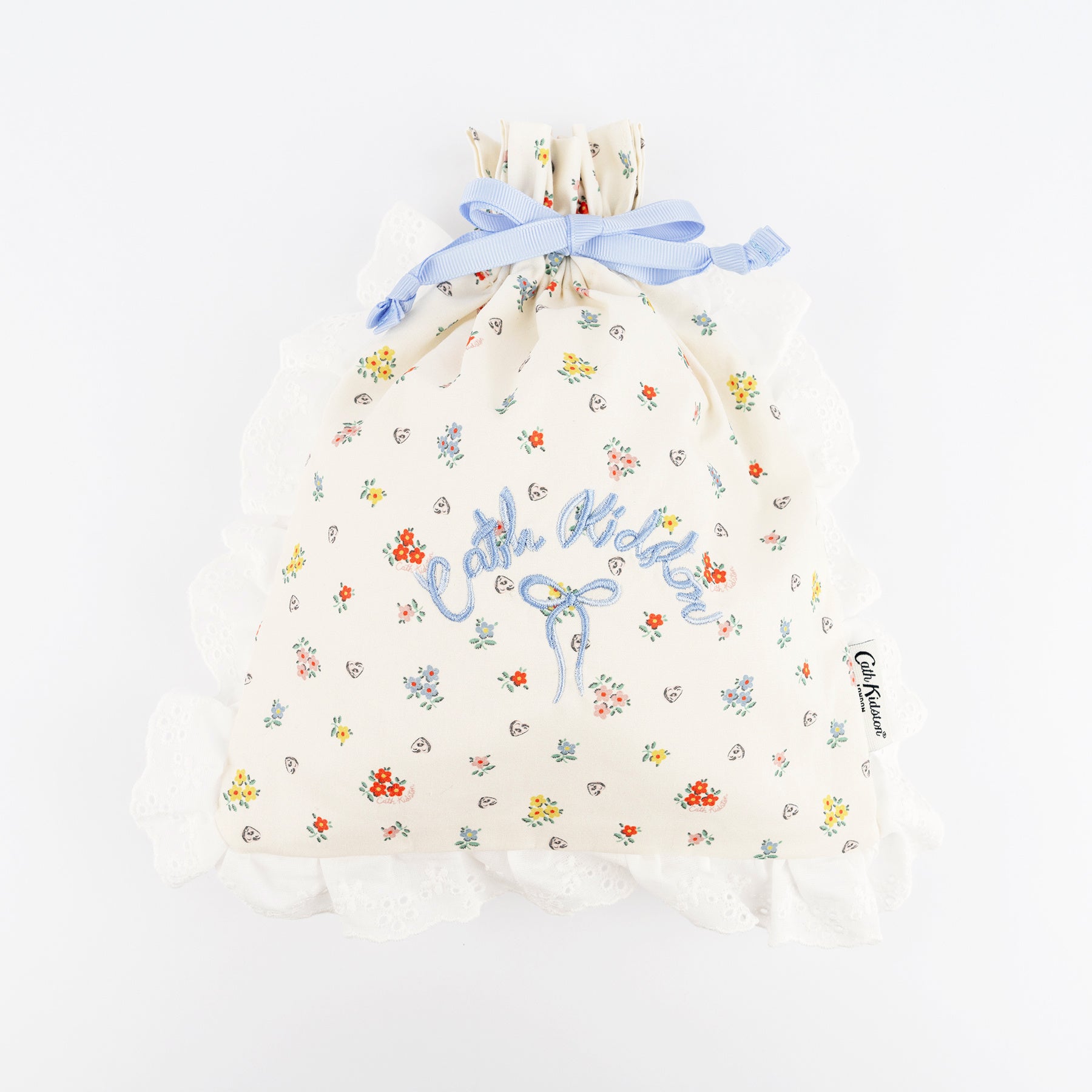 ◇コットンレース ドローストリングポーチ Button Block Floral Ivory / Sax 各¥2,970
