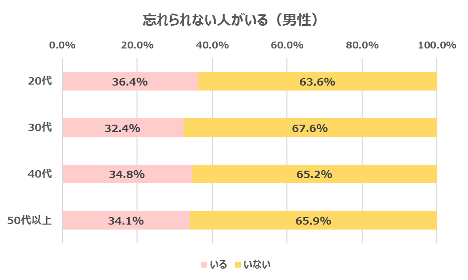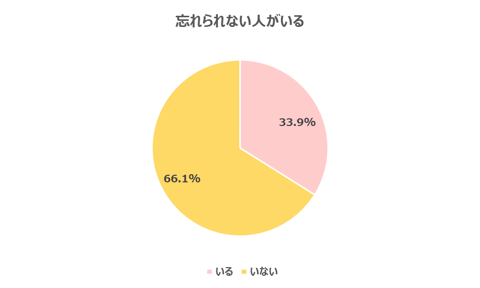 まず忘れられない人がいるか聞いてみました。3人に1人が「忘れられない人がいる」と回答しました。