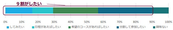 9割が日本一周旅行をしたいと回答。分割して参加したい33%、希望のコースがあればしたい28%等。
