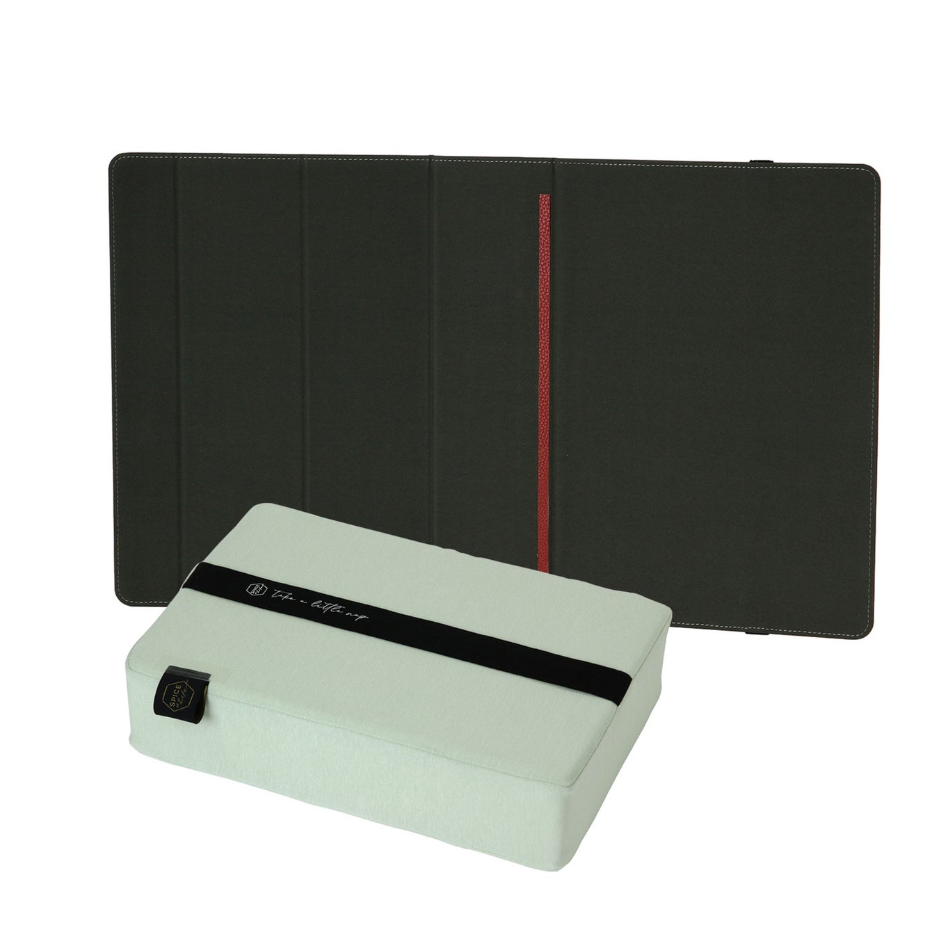 そんなお悩みを解消すべく、パフォーマンスを高めるための仮眠に最適な”本のように立てられる低反発枕”の開発に至りました。本のように収納できて、休憩時にもサッと開いてお洒落でスマートに仮眠がとれる「Nap Book」はデスクワークの新しい必需品としてオススメです。