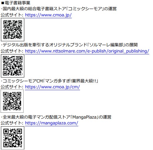 NTTソルマーレは、「エンターテインメントを通じ人の心を豊かにする」ことを目標とし、国内最大級の総合電子書籍ストアである「コミックシーモア」の運営、オリジナルブランド「ソルマーレ編集部」によるコミック制作、全米最大級の電子マンガ配信ストア「MangaPlaza」の運営、モバイルゲーム「Obey Me!シリーズ」「Shall we date?シリーズ」「Moe! Ninja Girls」を中心としたエンターテインメントサービスを提供しています。