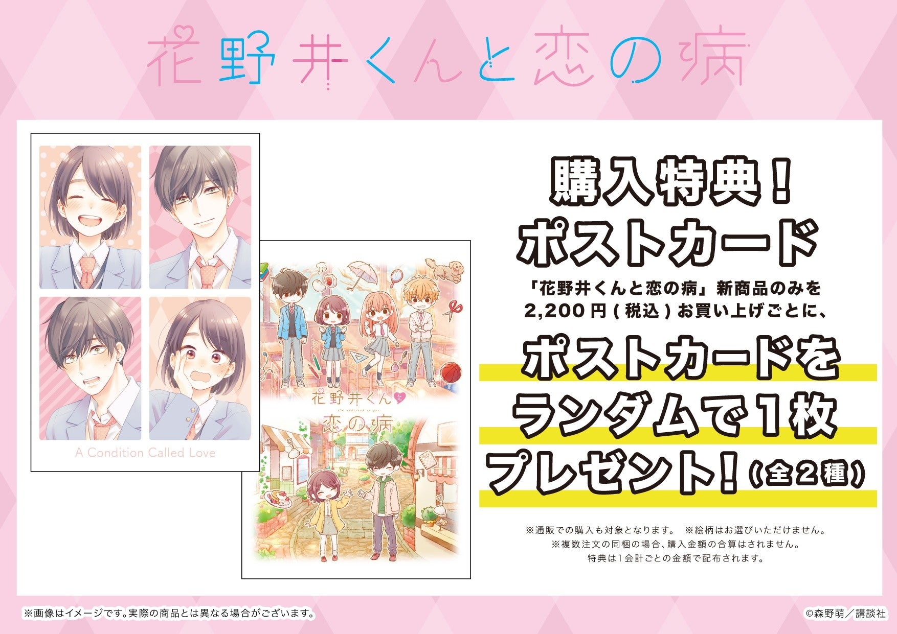 『花野井くんと恋の病』新商品のみを1会計2,200円(税込)お買い上げごとに、特典ポストカード(全2種)をランダムで1枚プレゼント。