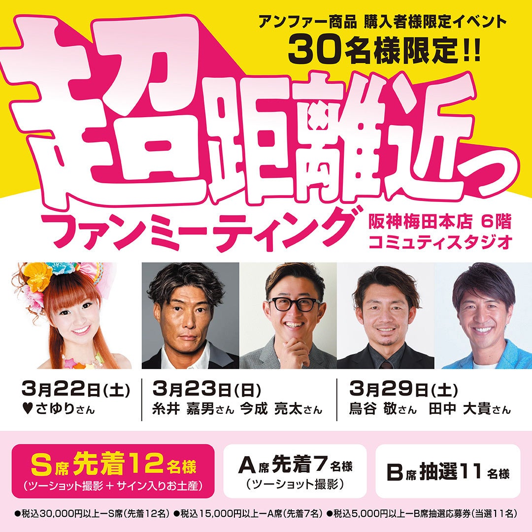 アンファーポップアップショップ(阪神梅田本店2F ビューティーイベントスペース2)にて、お買い物いただいたお客様限定でスペシャルゲストを迎えたトークショーにご招待(一部抽選)いたします。今回のトークショーは各回限定30名という超プライベート空間で開催。美と健康にまつわる㊙トークや今年の阪神タイガース予想など盛りだくさんの予定です。イベントではゲストと交流できる楽しみ体験コンテンツもご用意しております。このトークショーを通じて、より美しく、健康で、活気のある新生活を迎えていただけたらと思っております。是非ご参加ください。