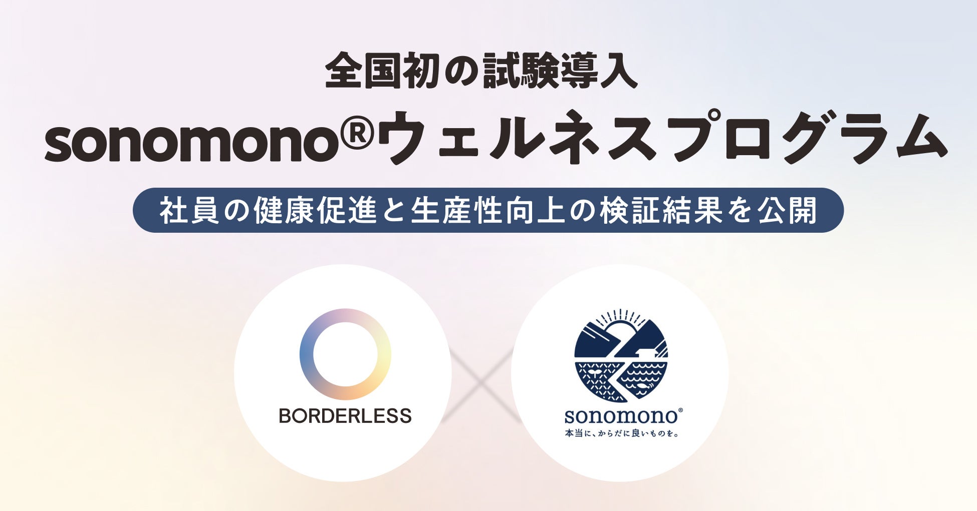 株式会社ボーダレス・ジャパン(本社:福岡県福岡市、代表取締役社長:田口一成、以下:当社)は、このたびそのもの株式会社(本社:福岡県福岡市、代表取締役社長:日高絵美)が提供する『sonomono Wellness program(ソノモノウェルネスプログラム)』を試験的に導入いたしました。