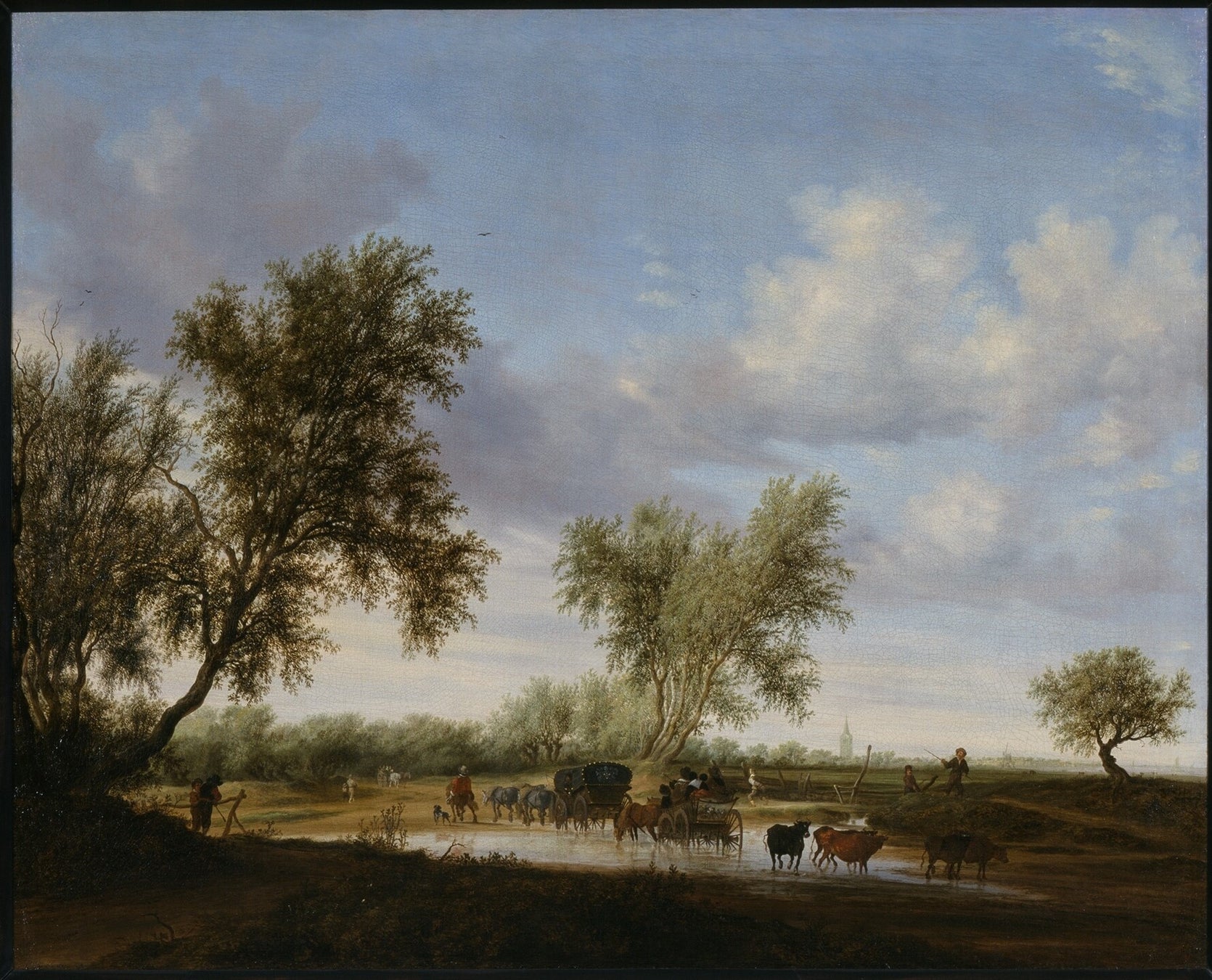 ≪旅人のいる風景≫サロモン・ファン・ロイスダール 1945年 油彩、キャンバス