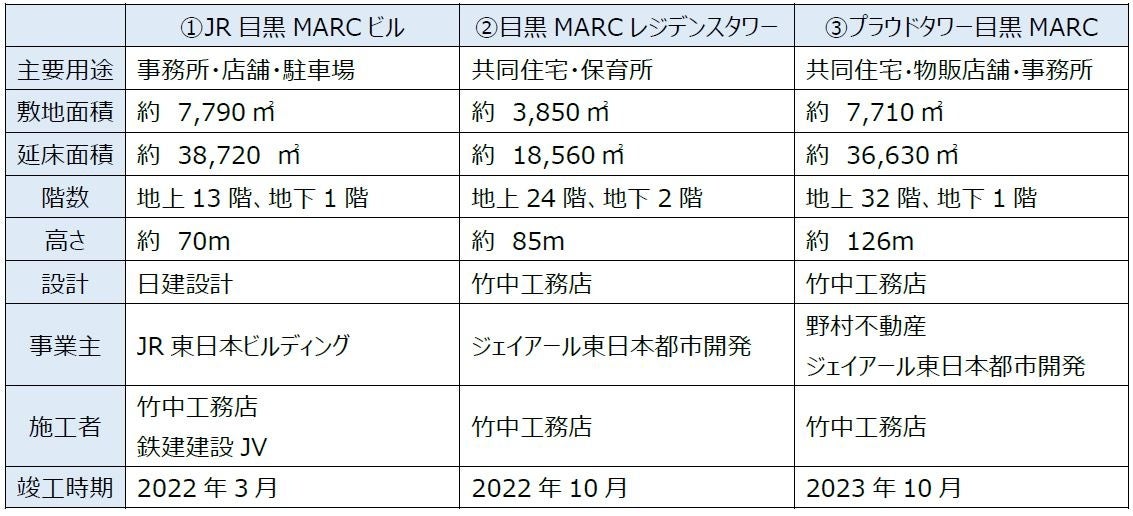 ■本事業のポイント ①住まいと働く場所が共存した多様性のあるまちを目指し、JR 東日本グループと野村不動産グループが共創したオフィス・賃貸住宅・分譲住宅の3 棟からなる複合開発「MEGURO MARC」が10 月16 日に全棟完成 ②2023 年10 月に分譲住宅棟の引渡しが始まり、まちに徐々に賑わいが生まれ始めたことを受け、12 月8 日・9日の2 日間 “まちびらき” を開催、8 日12:45~オープニングセレモニーを行いますので、是非、ご取材ください。 (詳細は別添のチラシをご参照ください) ③用途が異なる3 棟が一体となって街区全体の環境を良好に保ち、豊かな時間を創出するため、一般社団法人MEGURO MARC を立ち上げエリアマネジメント活動を推進 |