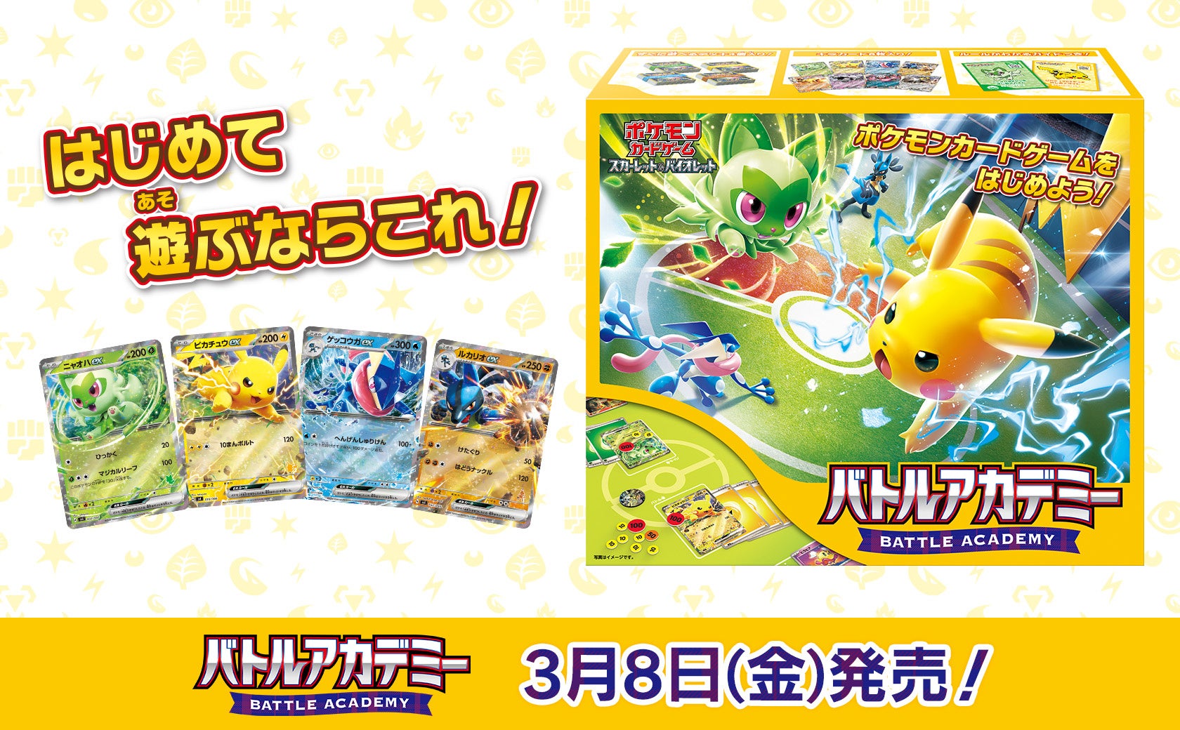 株式会社ポケモンは、2024年3月8日(金)に、ポケモンカードゲーム スカーレット&バイオレット「バトルアカデミー」、「いつでもどこでも バトルアカデミー」を発売いたします。