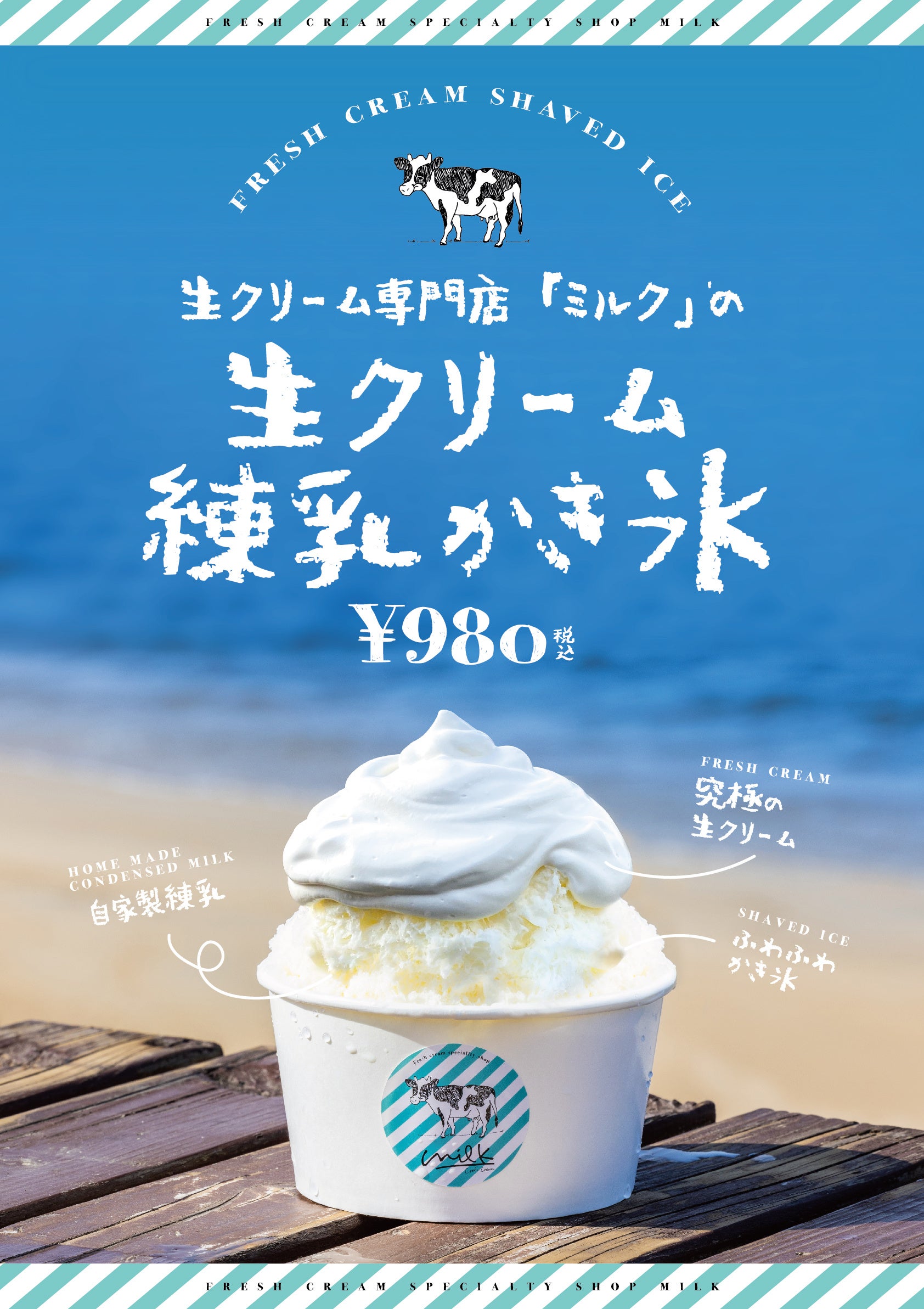 福岡限定!ローソンとコラボで人気の生クリーム専門店ミルクから「生クリームが主役のかき氷」が誕生!福岡カリフォルニアBBQビーチでしか食べることができないレアスイーツ!