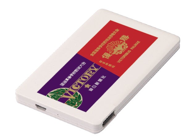 両大会の優勝旗をデザイン。スマホとともに片手に収まる薄型