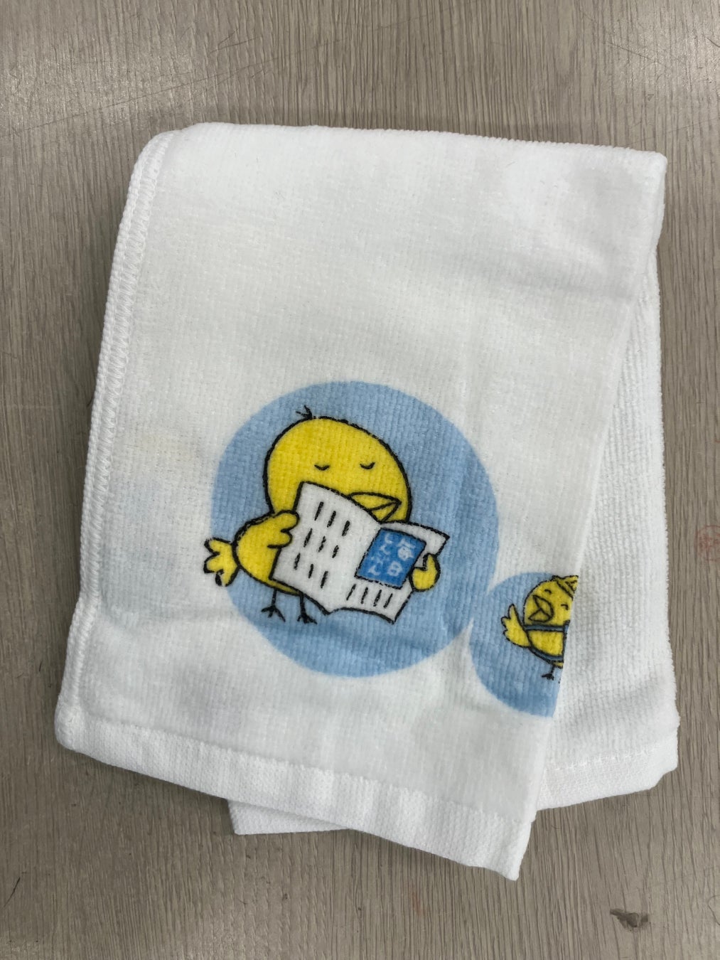 ハンドタオルは毎日新聞のキャラクター「なるほドリ」をデザイン