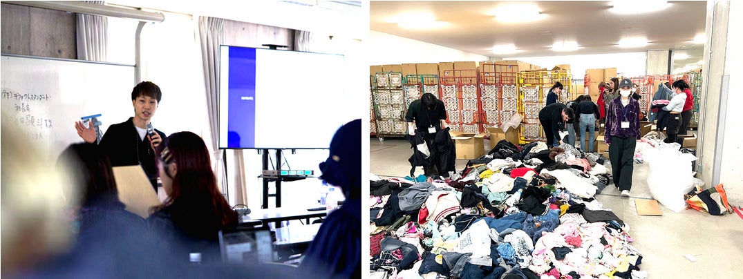 また、4月27日には倉庫見学を実施。実際に今回のプロジェクトで使用する廃棄衣料の選定・ピックアップを行いました。