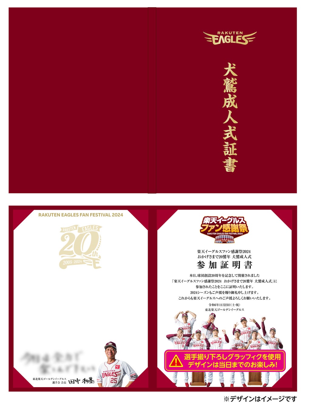 今シーズンはご来場のお客様にファン感謝祭2024限定の「犬鷲成人式 記念証書」をプレゼント!