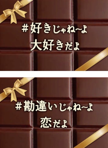 個包装にはシェアするのが楽しくなる仕掛けとして、学生たちと考えた「#好きじゃねーよ大好きだよ」や「#本命チョコじゃねーよ友チョコだよ」 といった、「#○○じゃねーよ○○だよ」のフレーズを記載しています。2024年の発売時には40種だったフレーズのバリエーションですが、今回のリニューアルで「#いつかじゃねーよいまだよ」「#勘違いじゃねーよ恋だよ」などを追加し50種に増やしました。渡したい相手にぴったりなフレーズを楽しみながら探していただけます。