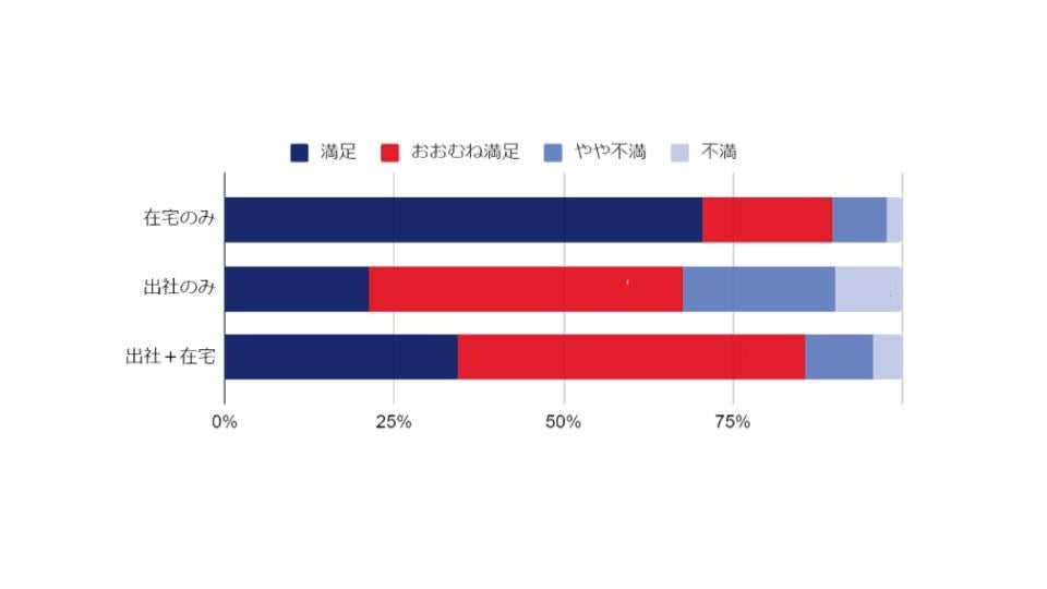 それぞれの勤務形態における満足度について調査した結果は以下のとおりです。