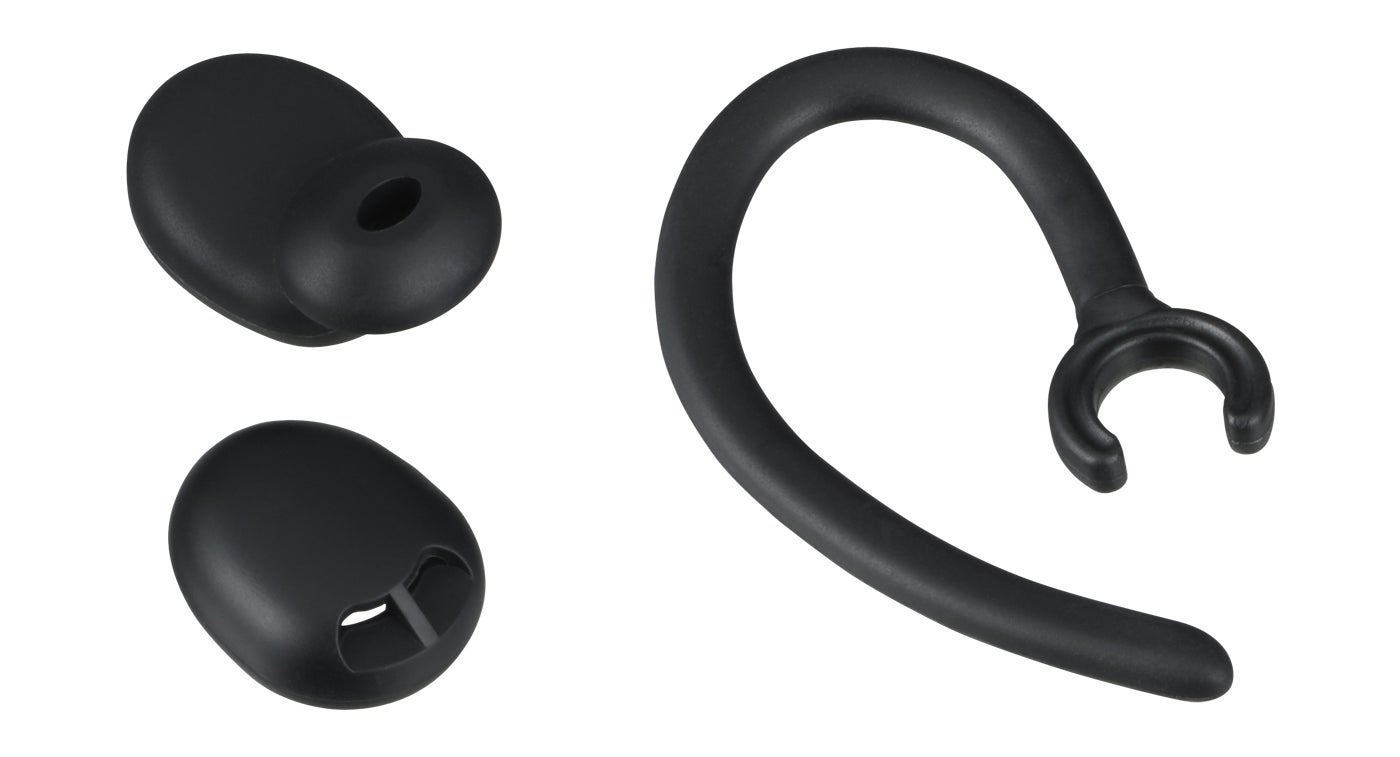 長時間利用に配慮した独自デザインのイヤーピースは、遮音性を高めるインイヤー型と、圧迫感が少なくより快適さを重視したオープン型の2種類(各3サイズ)を付属。インイヤー型のイヤーピースは、長時間でも快適に装着できるよう、耳の奥まで入り込み過ぎない設計としました。また、激しい動作を要する際、ヘッドセットがずれたり、落下したりするケースを防止するイヤーフックも付属します。