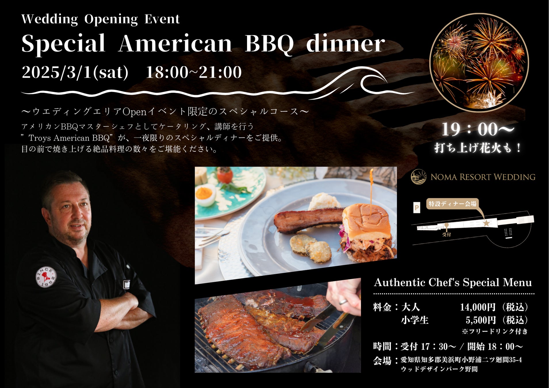 3月1日(土)の夜限定で、本場アメリカ人による、目の前で焼き上げる絶品料理の数々をご提供。