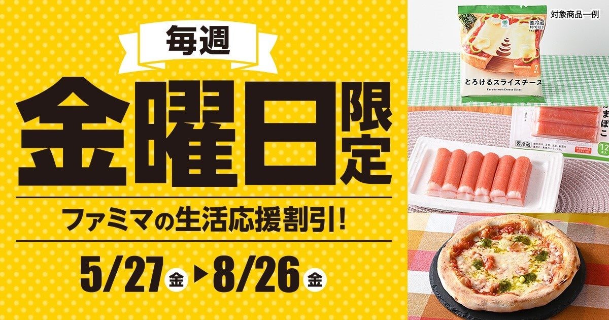 ファミマの生活応援割引!5月27日から8月26日までの毎週金曜日は豆腐・玉子やカット野菜などの日配商品と冷凍食品が20円引き!