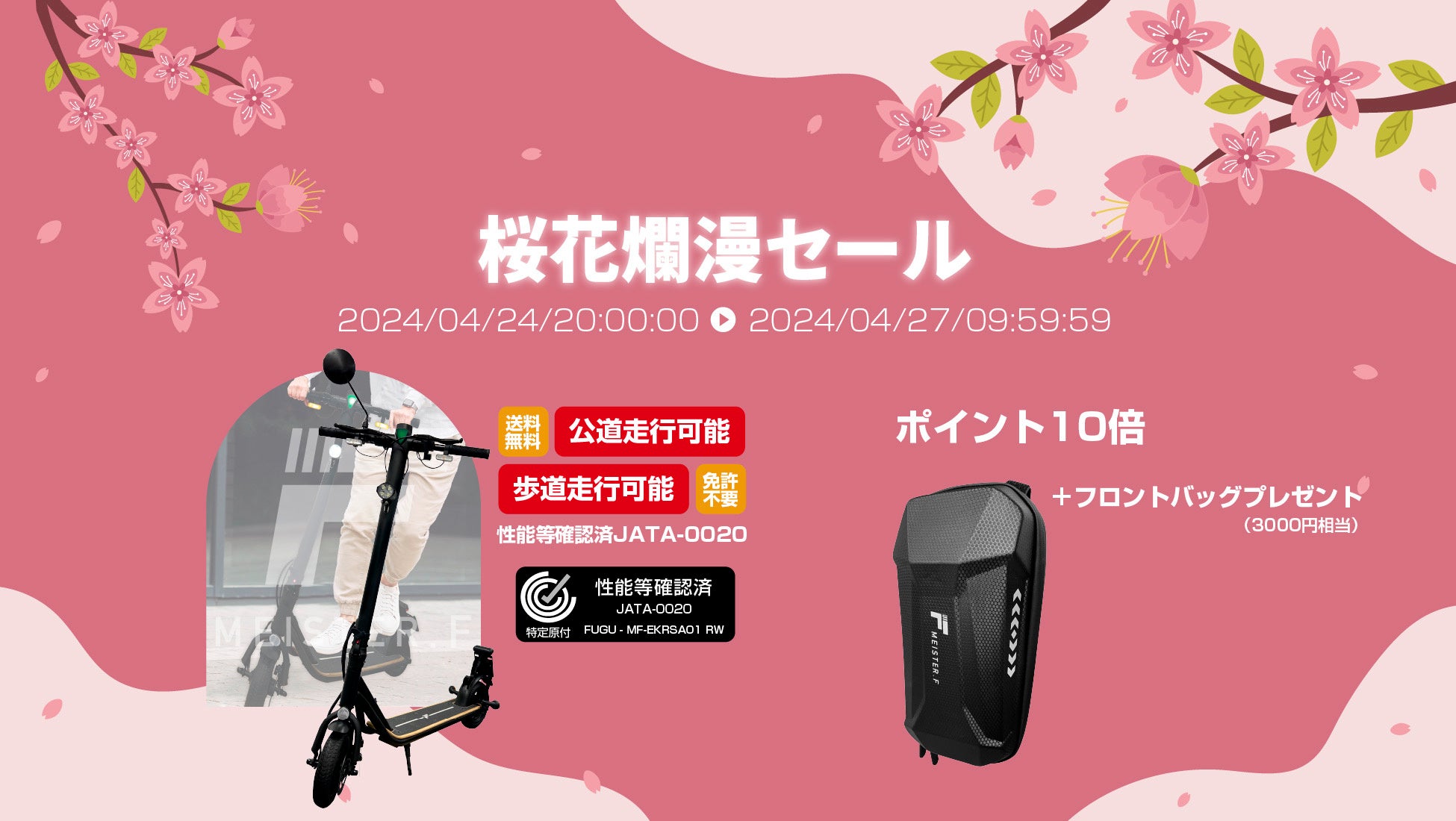 楽天「Show !t」で特定小型電動キックボードをを購入して初夏の走行を楽しもう!4月24日(水)からフロントバッグプレゼントキャンペーンを実施。楽天スーパーセールに参加しポイント10倍プレゼント!