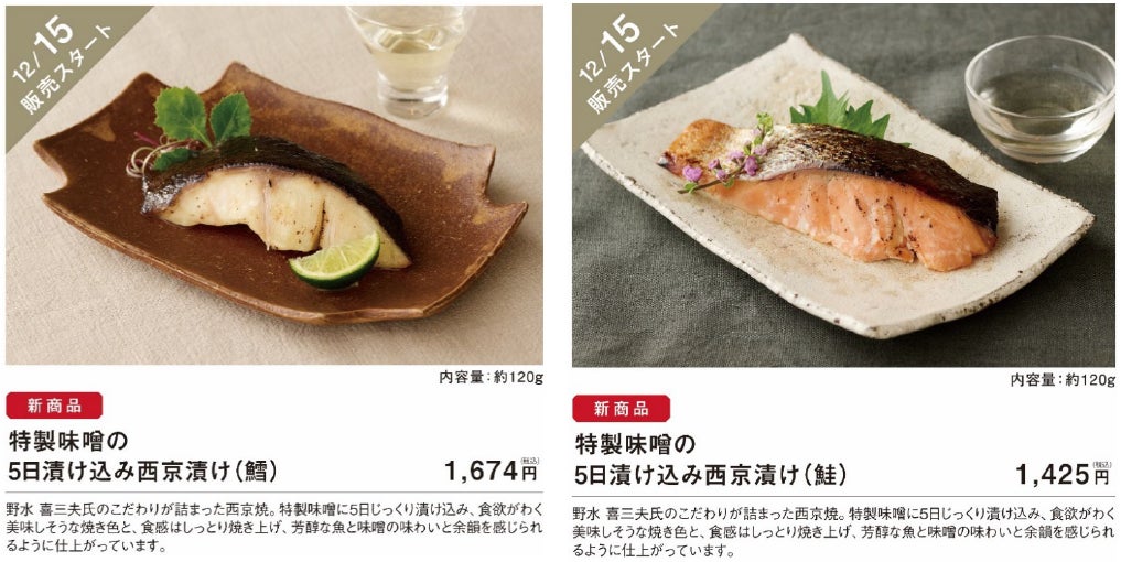 創業以来宮内庁への出入りを許され、数々の式典で料理を担う名店。三代目野永喜三夫店主が考案する西京漬けは、縁起のよさを担いで紅白で揃えました。「おふくろの味」をコンセプトとする店主と共同開発し、お魚を提供している調理済商品がないことに着目しご用意いたしました。何度も塩加減や漬け方を協議し、湯煎1つで食べられるこちらの商品はゆっくりしたい年始にお勧めです。