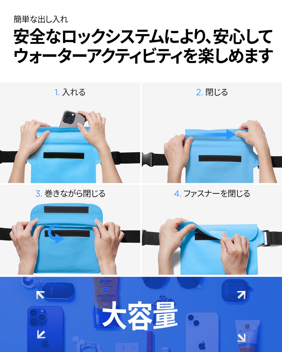 海水浴やプールでの水遊び、ハイキング、フェス、雨の日の外出にもおすすめ!夏のアクティブシーンにぴったりなSpigenの防水ポーチ