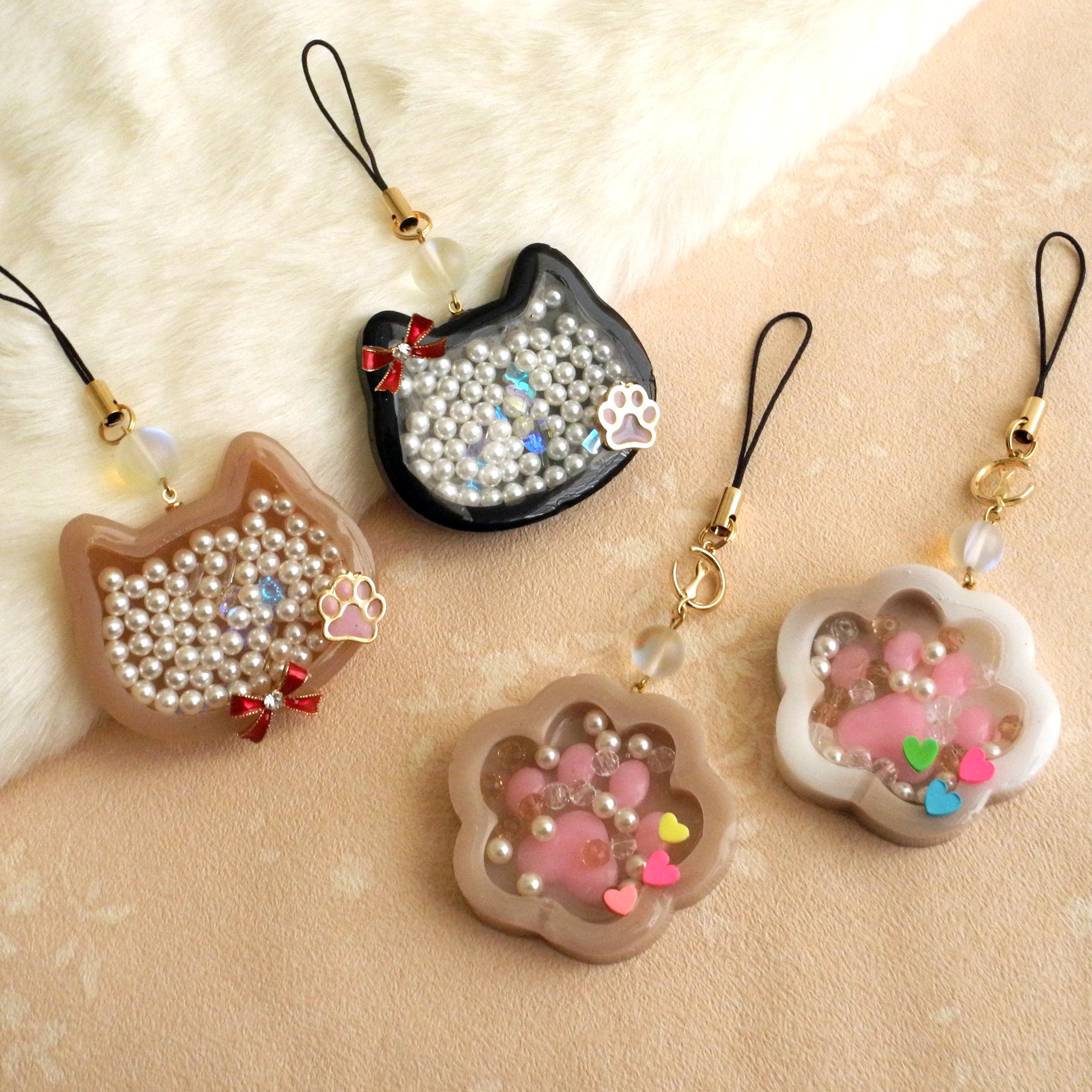 レジンで作る ヴィンテージボタン風アクセサリー&猫と肉球のシェイカーキーホルダー