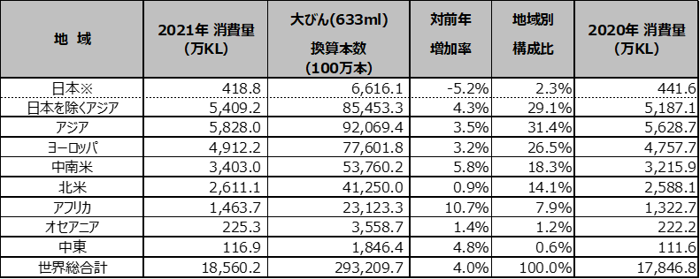 ・2020年・2021年の日本の消費量は株式会社醸造産業新聞社の推計による